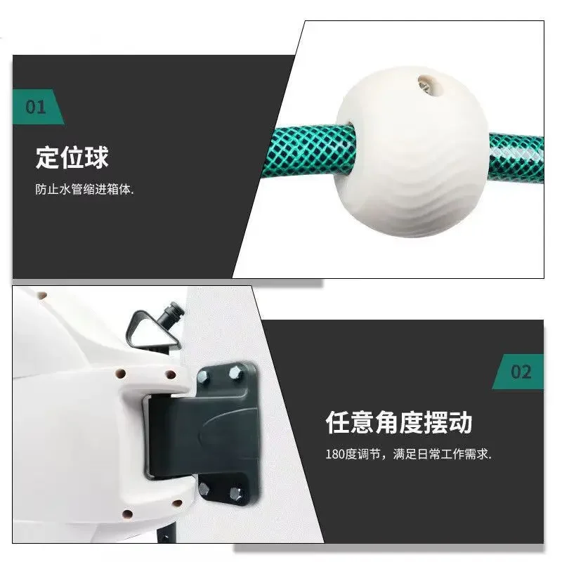 【180° Swivel Bracket】The wall mount design of retractable garden hose reel allows it to rotate up to 180 degrees to offer added flexibility and convenience in your garden.